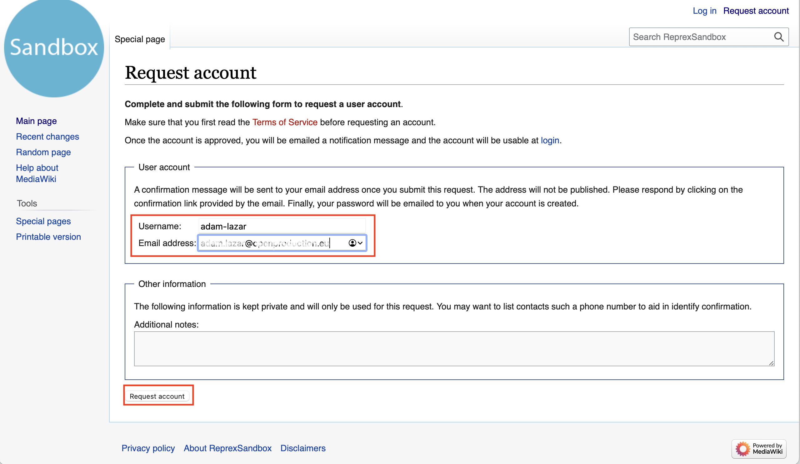 - On the next page, type in your chosen username and your email address. For a username, use a professional one that is similar to what you use on Keybase, Github, etc. Then confirm by clicking request account again.